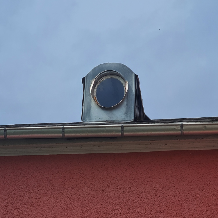 Der Rahmen wird in eine Öffnung in einer Wand oder dem Dach eingesetzt.